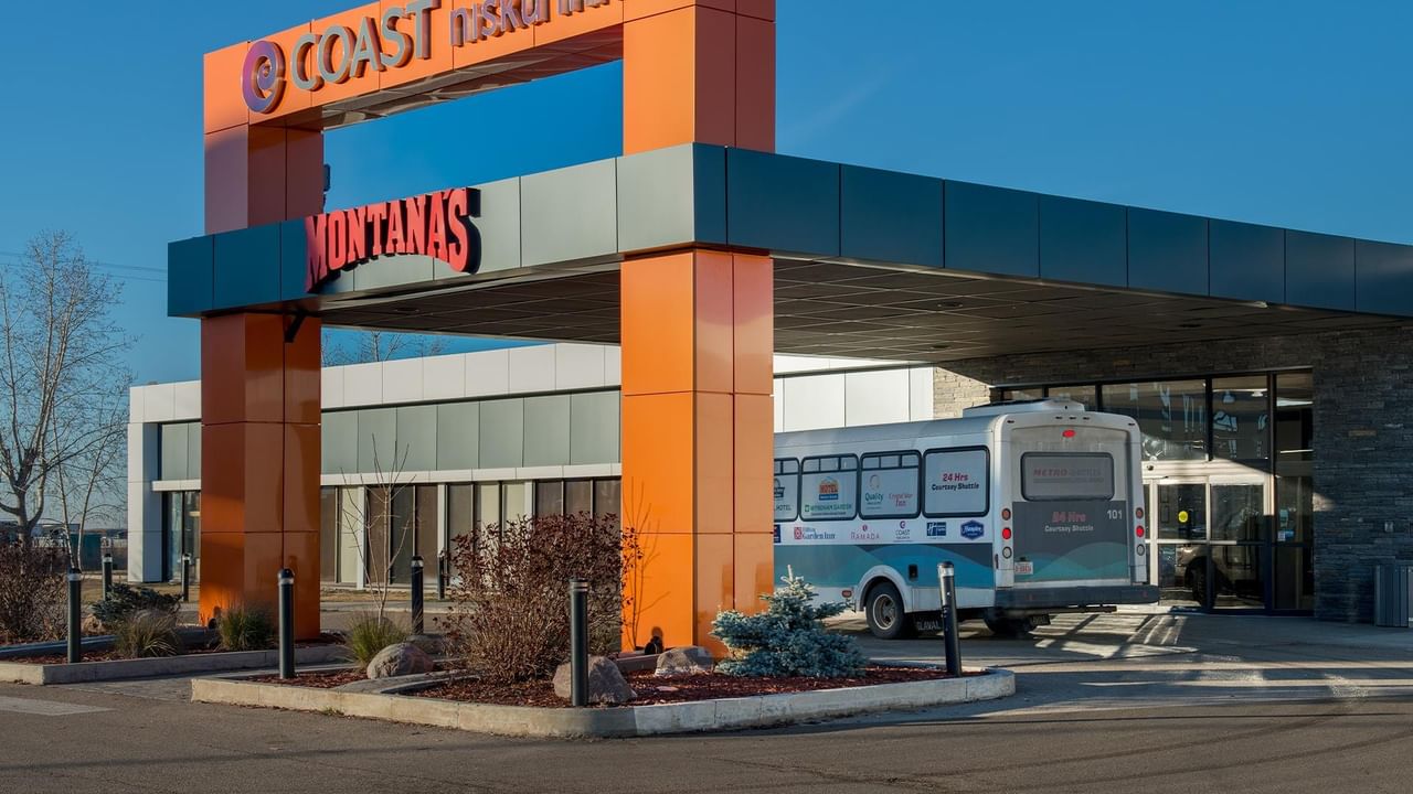 Touch down at Edmonton International Airport and make your way to Coast Nisku Inn & Conference Centre – a stylish, Refreshingly Local ™ destination for work or play. We’re just a stone’s throw from YEG International Airport in the heart of the Nisku-Leduc Business Park, and we offer a free shuttle service to and from the terminals. Step inside and experience our unique, 15,000 square-foot atrium, which features a bedrock river, bridges, a state-of-the-art fitness centre and a waterpark with a pool, hot tub and 120-foot slide. Unwind in well-designed rooms and suites with free wi-fi and other home-like amenities. Bring your furry friend along – we offer pet-friendly accommodation. Feeling hungry? In addition to a free daily breakfast, we offer delicious, casual cuisine at Montana’s BBQ & Bar, as well as drinks, VLT machines and sporting events on big screens at the Den Pub.