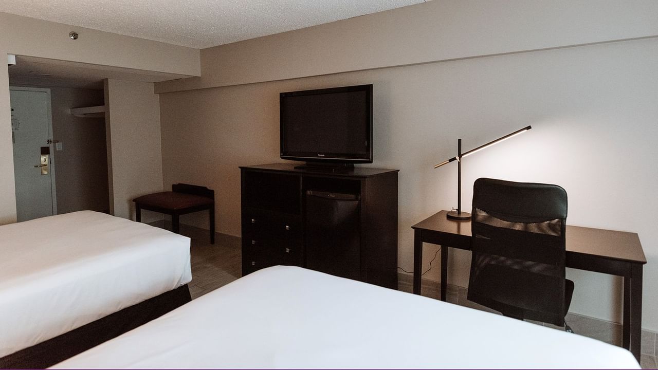 Bring your furry friend! This Coast Two Queens room is pet friendly and features two triple-sheeted queen beds, a mini fridge, work desk and breakfast.