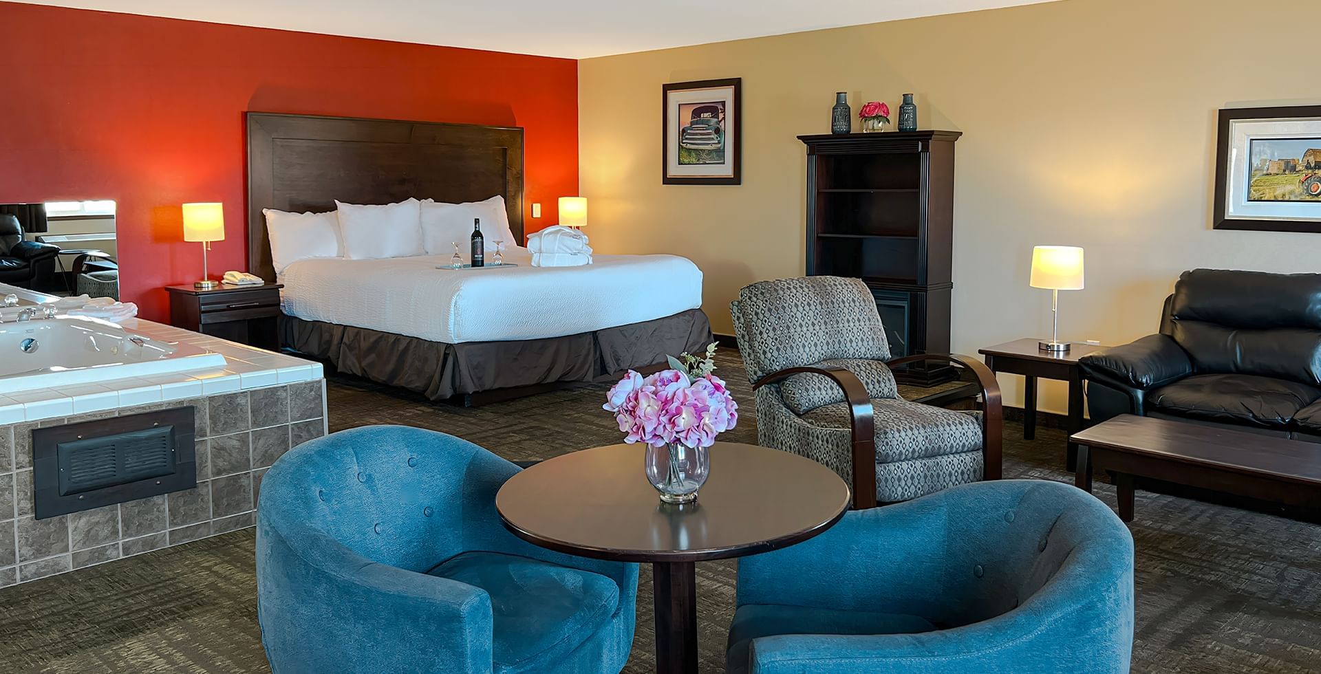 Some of our accommodations offer full kitchens, adding flexibility to your visit. Thinking of bringing your furry friend along? Go for it – our hotel is pet-friendly. For a real treat, reserve our Premium Grand Suite, which features a jetted tub in the bathroom.